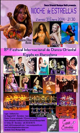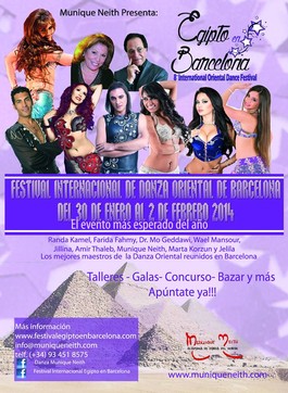 Un año más la gran bailarina Munique Neith organiza su Festival Internacional de Danza Oriental llamado "Egipto en Barcelona". Serán 4 días intensos con talleres, conferencia, galas y muchas emociones. Habrá maestros increíbles como Mo Geddawi, Farida Fahmi, Amir Thaleb, Jillina, Wael Mansour, Marta Korzum, Jelila y Munique Neith.